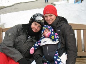 We embarked on our first vacation with Josie in February of this year when we headed up to Smuggler’s Notch, VT with some of my family.  I my mind, this trip could have gone either way.  Luckily, Josie was an absolute trooper.  Eight hour car ride, and she barely made a peep the whole time.  She did awesome sleeping in the Pack ‘n Play in a strange place, and having her schedule thrown off.  Just when we thought we were in the clear, another first came…