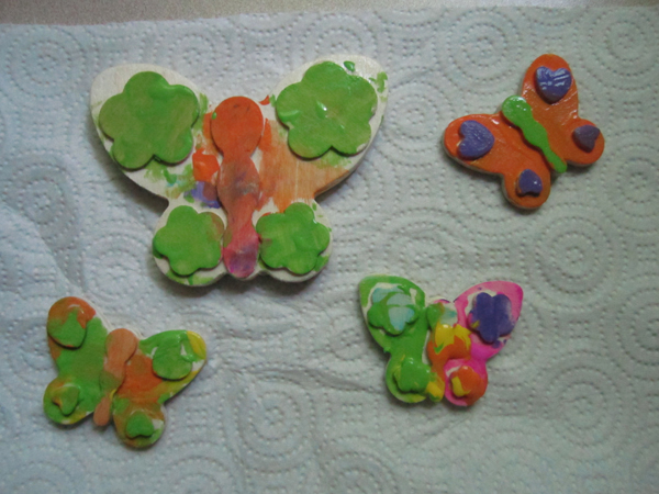 Let the paint dry on the butterflies. Once they are dry you can stick them on the fridge or give them to grandmas, grandpas, aunts and uncles. I find that when you and your kids make something like a magnet that can be used in everyday life, these crafts tend to “live” a bit longer than other crafts we have made in the past. Hope you enjoyed this week’s edition of Art and Crafts.