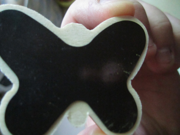 Start out by taking glue and stick the magnet material on the wooden butterfly pieces. Some kits already have magnets on them so if you get those you are already ahead of the game. Craft supply stores like Michaels will have these magnets.