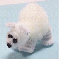 Cut two fuzzy sticks in half. Wrap each half tightly around the pen and slide off. To make the paws, reshape the last coil of each one so it is bigger on one side than the rest of the coils. Glue the coils at the top to the 1 ½” pom poms to make the legs and the body. For the ears, cut two 1” pieces off of a fuzzy stick. Form each piece into a circle. Cut off a 5” piece. Use your thumb and forefinger to form a spiral.