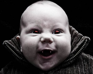 For the first month of his life, there was at least a 65% chance that my son, Tommy Boy, was indeed a vampire. I say this for three reasons: 1) He had a rather pale skin tone. 2) He slept all day, and would only open his eyes at night. [...]