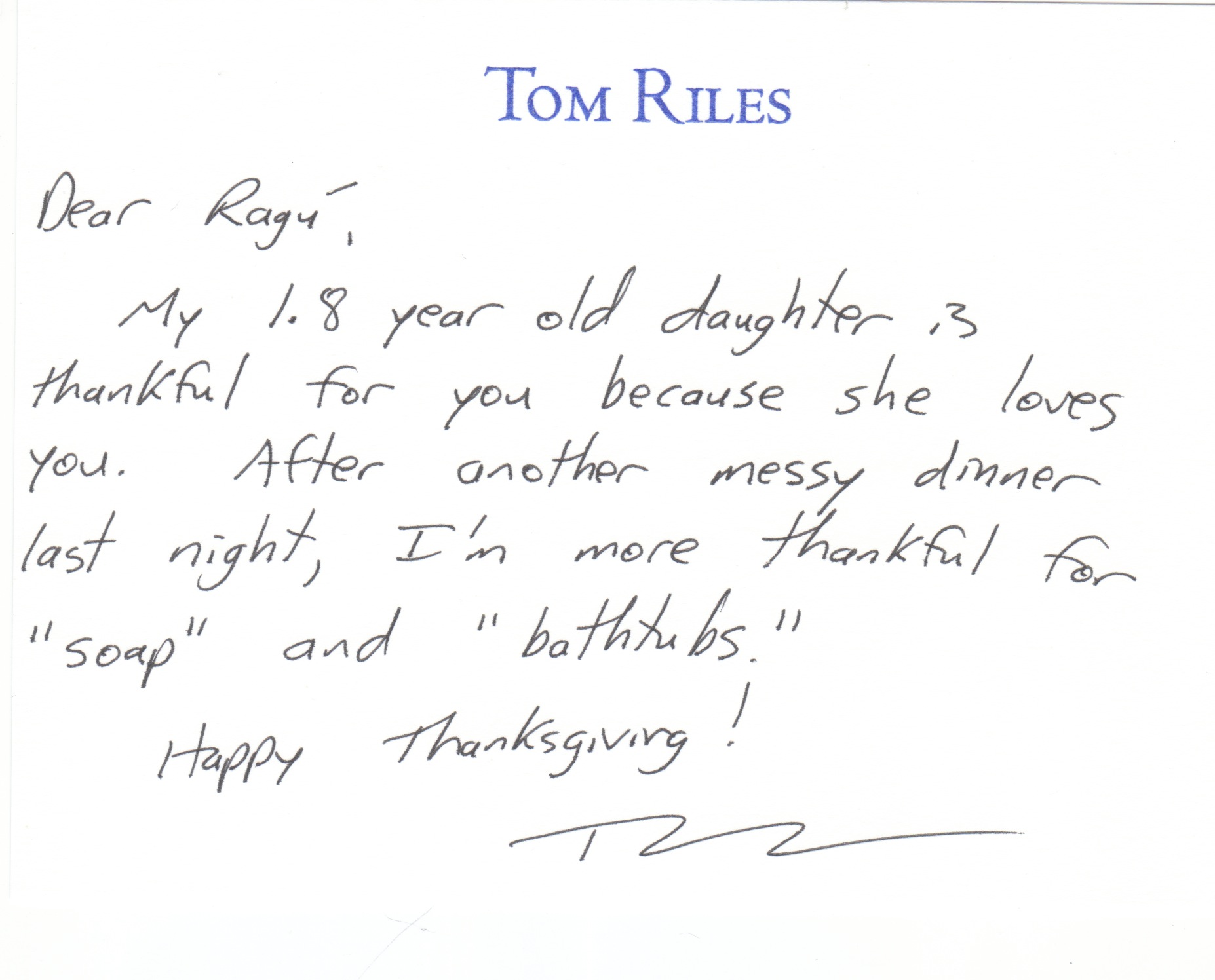 My annual Thanksgiving cards are going out.  Your turn, Ragu!