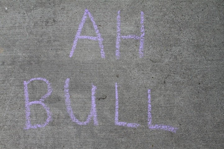 Babs said it.  I wrote it in chalk.  Your job is to try to guess what word or words she was trying to say.