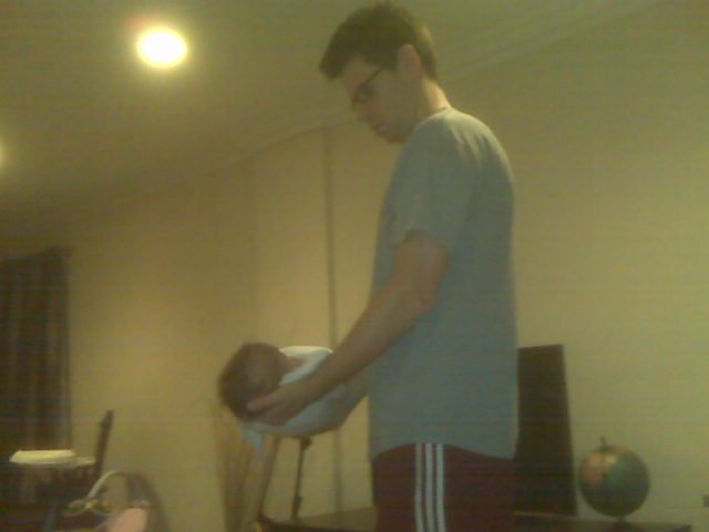 The next morning at 4:30AM, Babs was ready for the gym.  I was seated on the couch, so I did a simple shoulder press over my head.  She had just eaten, so I did these really slowly.  Let me tell you, lifting 8-9 lbs at a slow pace, can really start to hurt.  This coming from an aspiring bodybuilder in college (He wrote this paragraph).