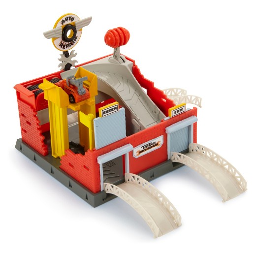 Keep Tonka Tinys in tip-top shape at the Tune-Up Garage! Featuring a working vehicle lift, conveyer belt, three bridges and a rotating garage sign, this playset provides hours of play! The Tune-Up Garage Playset includes an exclusive Tonka Tinys vehicle and is compatible with every vehicle in the line. All Tonka Tinys playsets can be connected to expand the Tonka Tinys world! Manufacturer: Funrise, Ages 5+, SRP $9.99