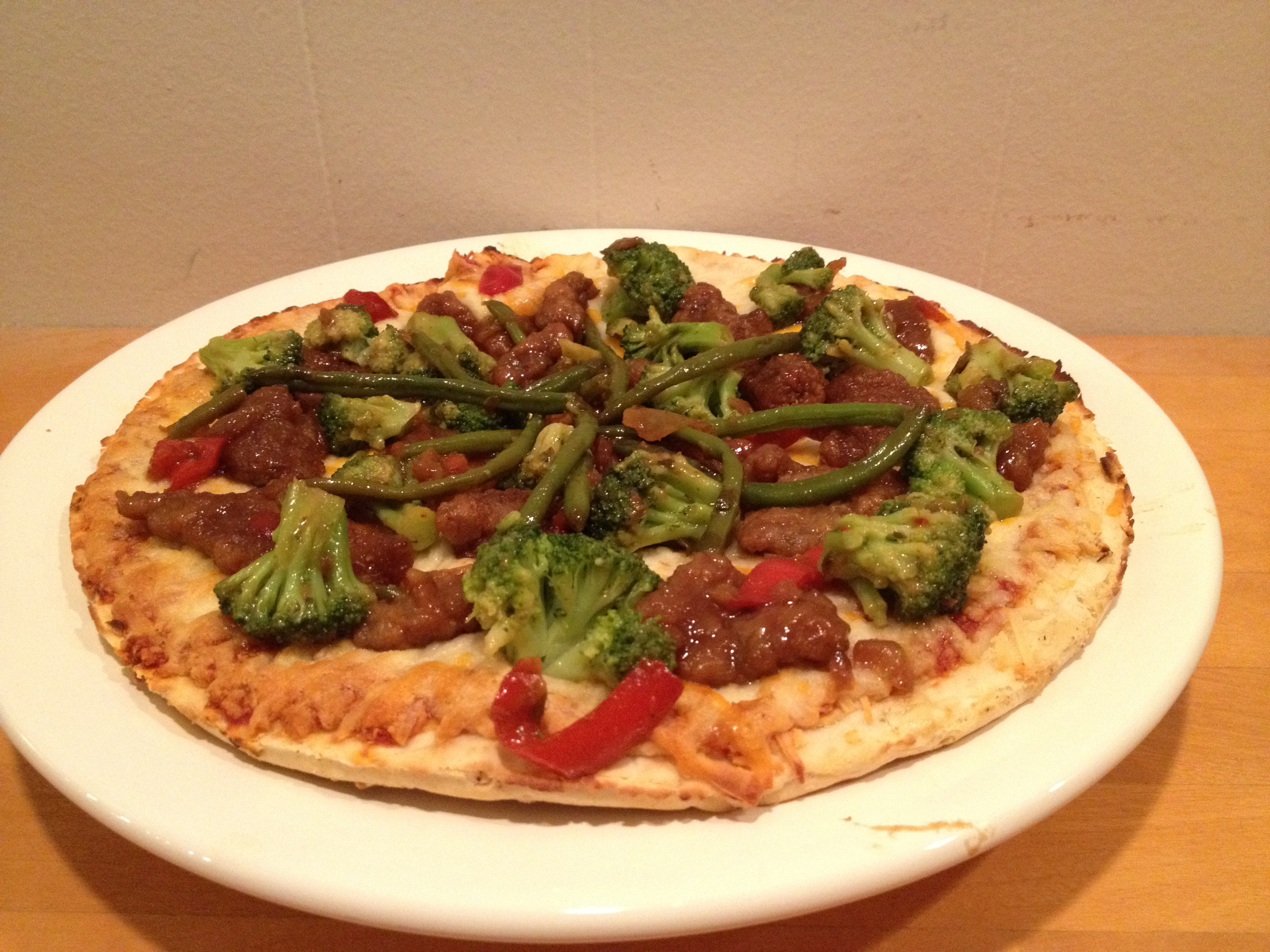 What’s my favorite chinese dish? Beef and Broccoli.  What’s my favorite type of pizza?  Pizza.  Put them together, and what do you get?  Beef and Broccoli Pizza.  Enough said.
