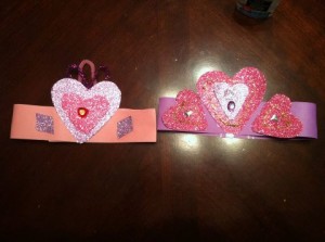 I took construction paper and cut them into two pieces. I measured the two pieces around each of my daughters heads. Then I let them design the crown to their liking. We worked together and they had fun making their ideas come to life. After a few hours of letting the crowns dry they put them on and pretended they were princesses.