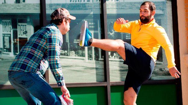 JH: Yeah, they are really good on turf. I do a lot stuff on turf. I do a lot of stuff on the road too. These shoes have been great for that. They are very light and very flexible. They have been great for me since we do a lot of stuff without shoes on. Even though they apply a lot grip they still form to your foot. If you stop or if you are on an uneven surface it almost feels like you are not wearing shoes.