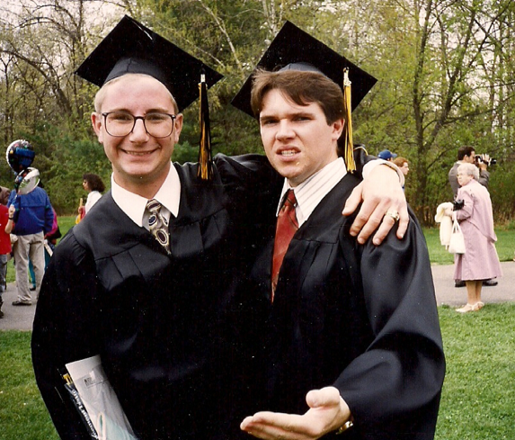 So, a special thanks to the “Tag Master”, and as a way of getting him back a bit please see the photo attached to this blog. It’s NOT a pretty photo of us at college graduation. Nice glasses pal, I bet you got all the chicks back then!! Until next time…ramble on!