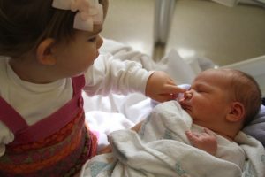 So…Babs had to meet her younger brother for the first time, and that happened at the hospital when he was one day old.  Babs was 662 days old.  I was 11,685 days old.
