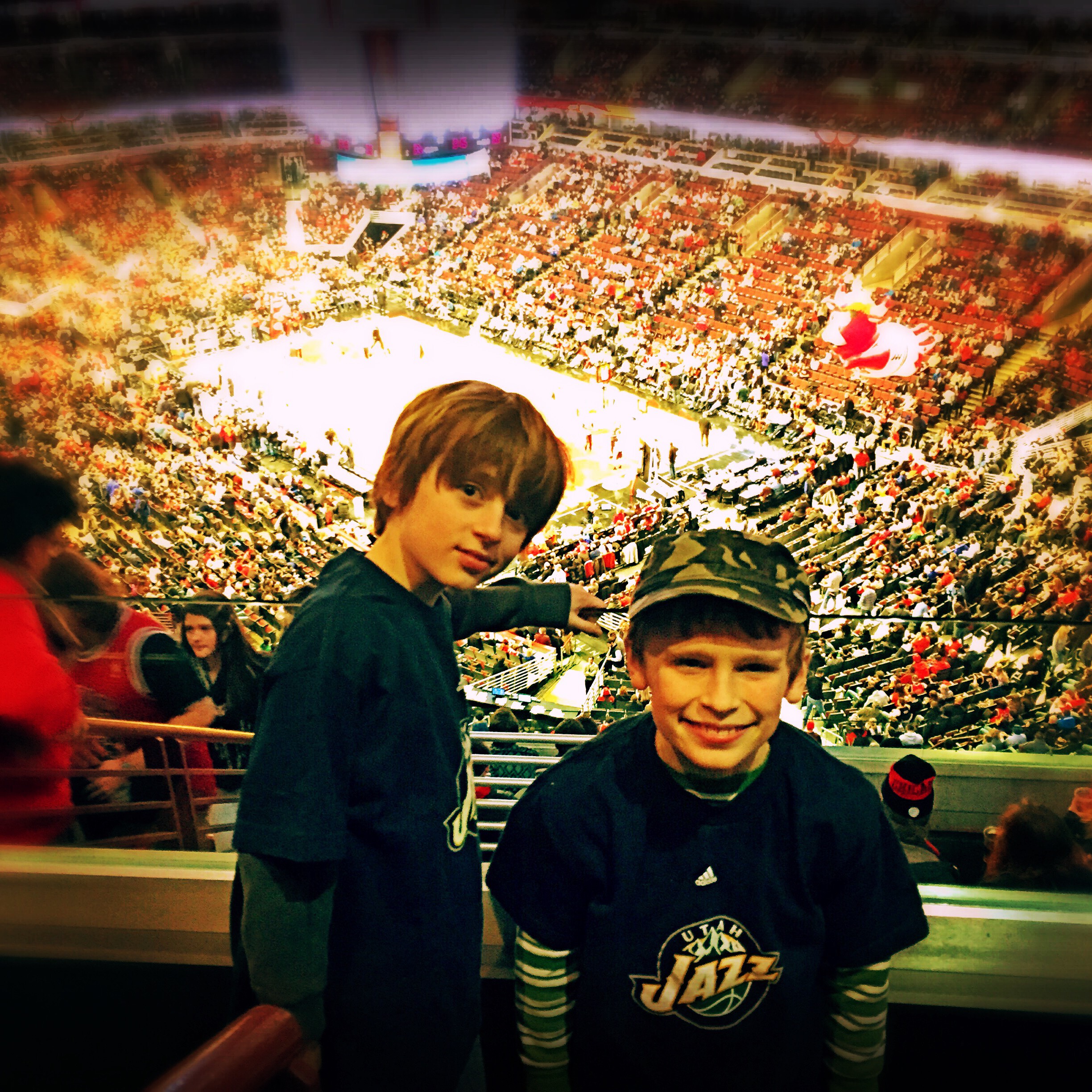 So yesterday I rushed home from work and we threw on our Jazz Gear and headed out to watch my (now our) team. We had popcorn and laughs and cheered with the small contingent of Jazz fans that had made it to the game. I taught them the names of the players and what their stats meant, and we discussed the intricacies of the game. I couldn’t wipe the smiles off their faces if I had wanted to.