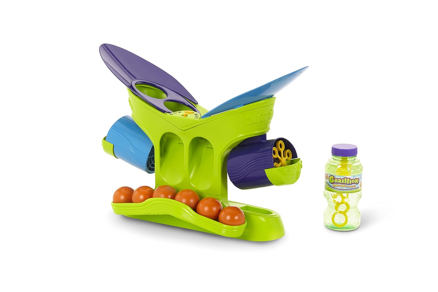 Experience the first game of its kind that blasts your opponent with bubbles! Gazillion Bubble Pong delivers fun and excitement as you bounce ping pong balls into your opponent’s side to score points and blast them with a GAZILLION bubbles. The first person to score 3 times wins!  And with 4 levels of difficulty, Bubble Pong is fun for the whole family. When the Bubble Pong game is over, turn on bubble machine mode for a non-stop bubble party! Bubble Pong includes 1 game console, 6 ping pong balls, 2 removable trays, 2 removable bumpers, and an 8 oz bottle of Gazillion Bubbles Solution. Batteries required, not included. Appropriate for ages 3 years and up! For more bubbles solution, check out https://bubbletreeusa.com/.